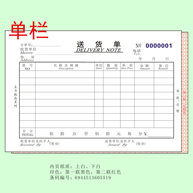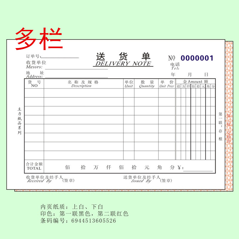 推荐理由:主力无碳复写32K横式二联三联四联单栏多栏式送货单大号销货单据