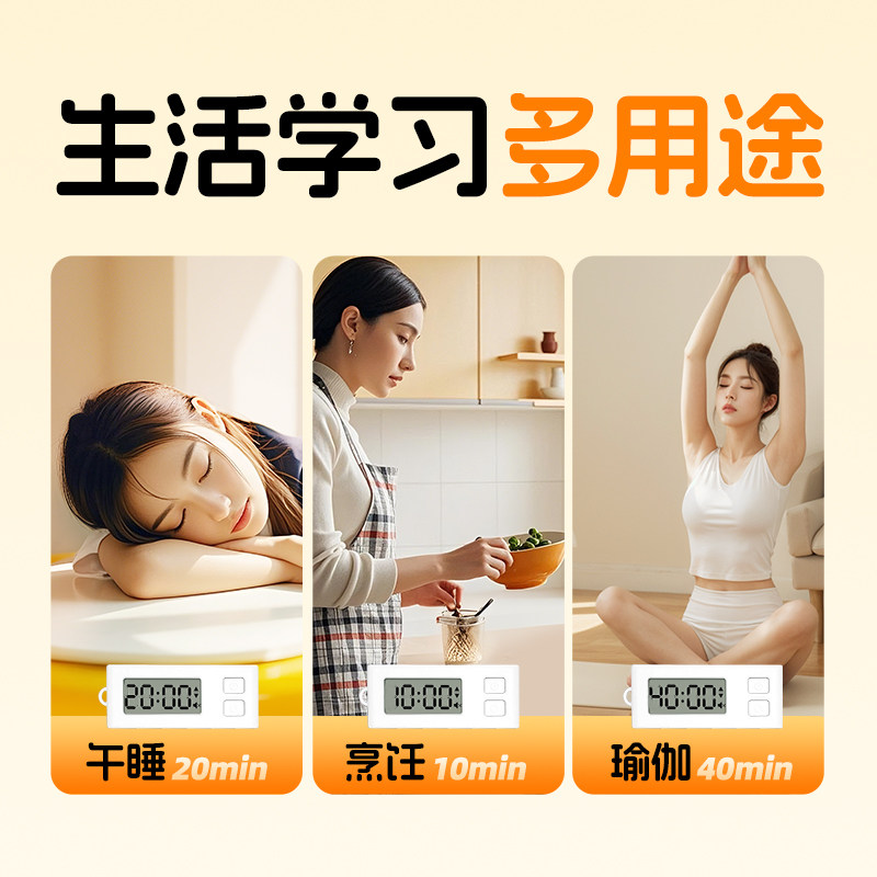 猫太子多功能迷你计时器学习专用静音倒计时提醒器闹钟时间管理器