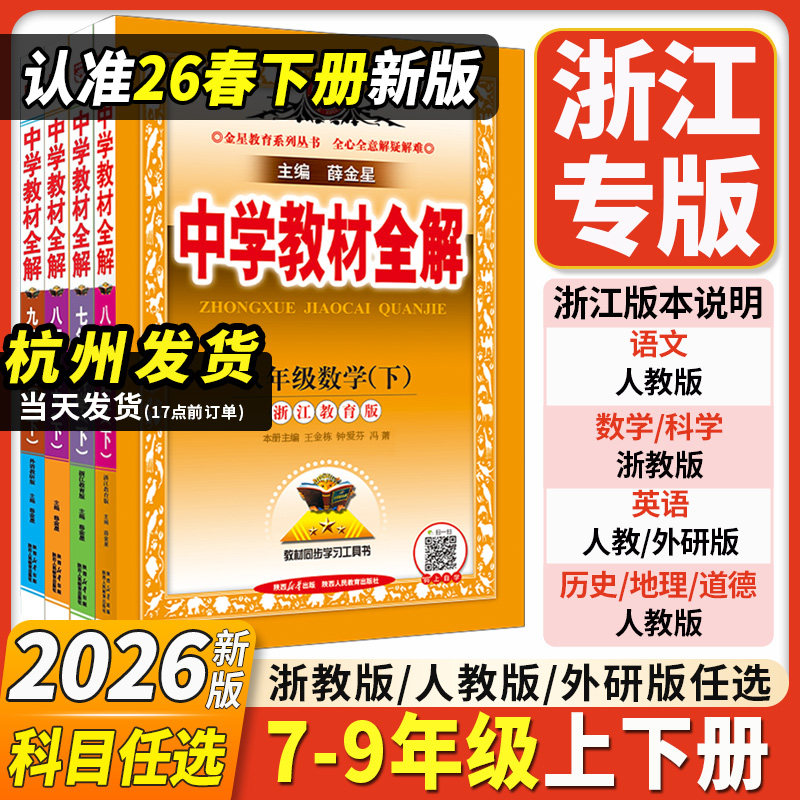 浙江专用2026新中学教材全解七八九789年级下册上册语文英语数学科学历史道德与法治地理人教浙教外研版初中一二三薛金星课堂笔记