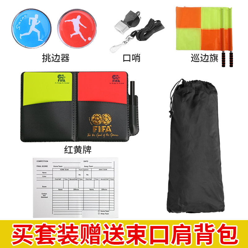 足球比赛裁判用品装备边裁旗挑边器红黄牌专业护齿口哨子巡边旗