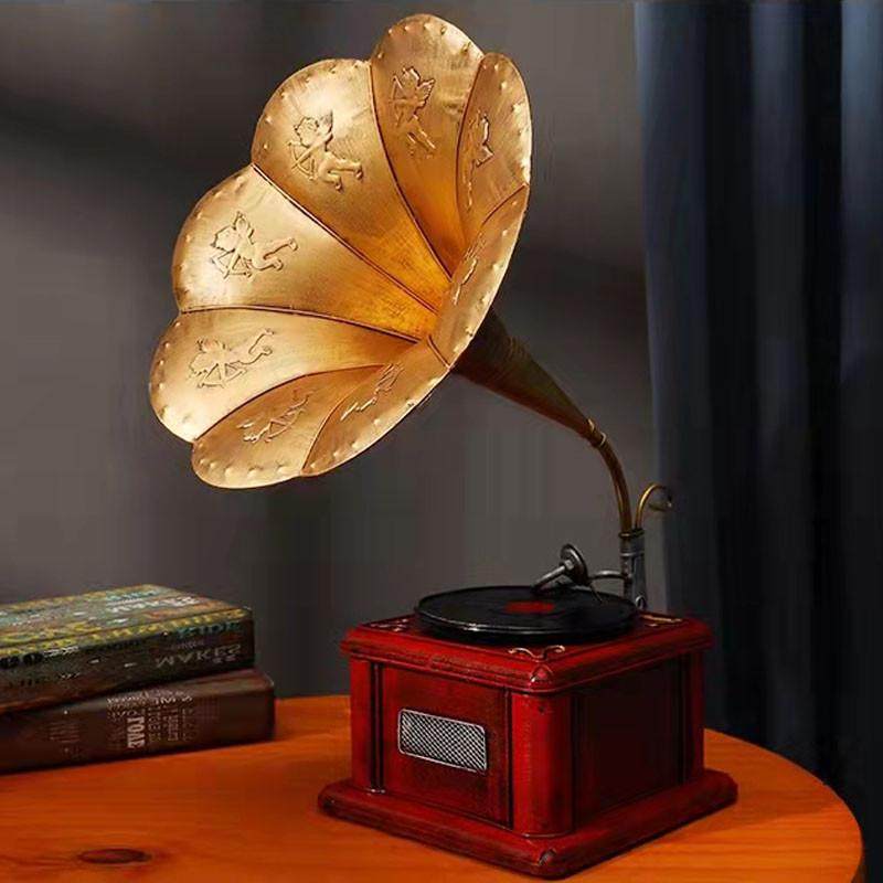 欧式复古大喇叭留声机模型桌面装饰摆件创意精致老式黑胶唱机道具