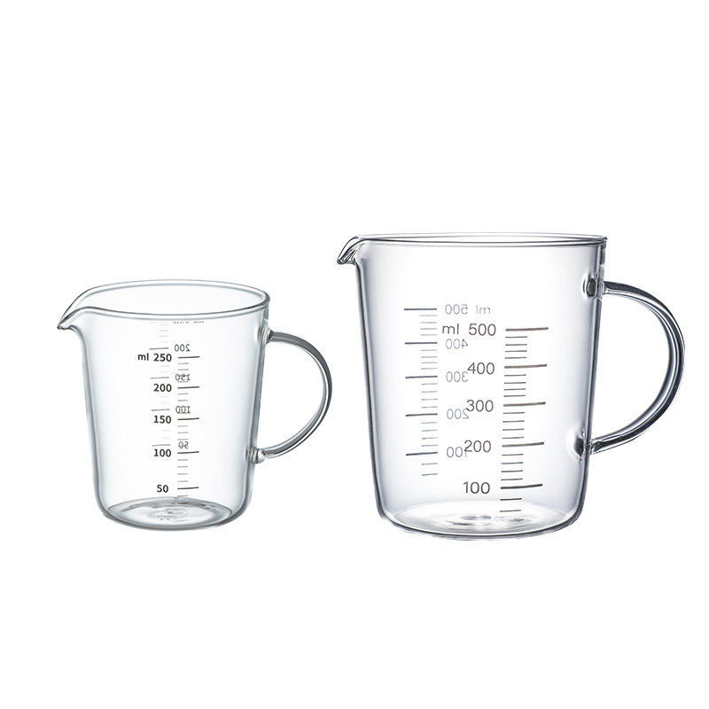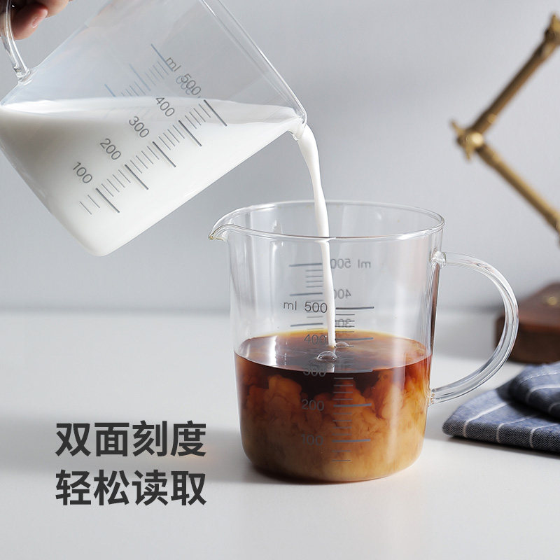 日本霜山量杯耐热高硼硅玻璃杯500ml烘焙牛奶杯微波加热刻度杯