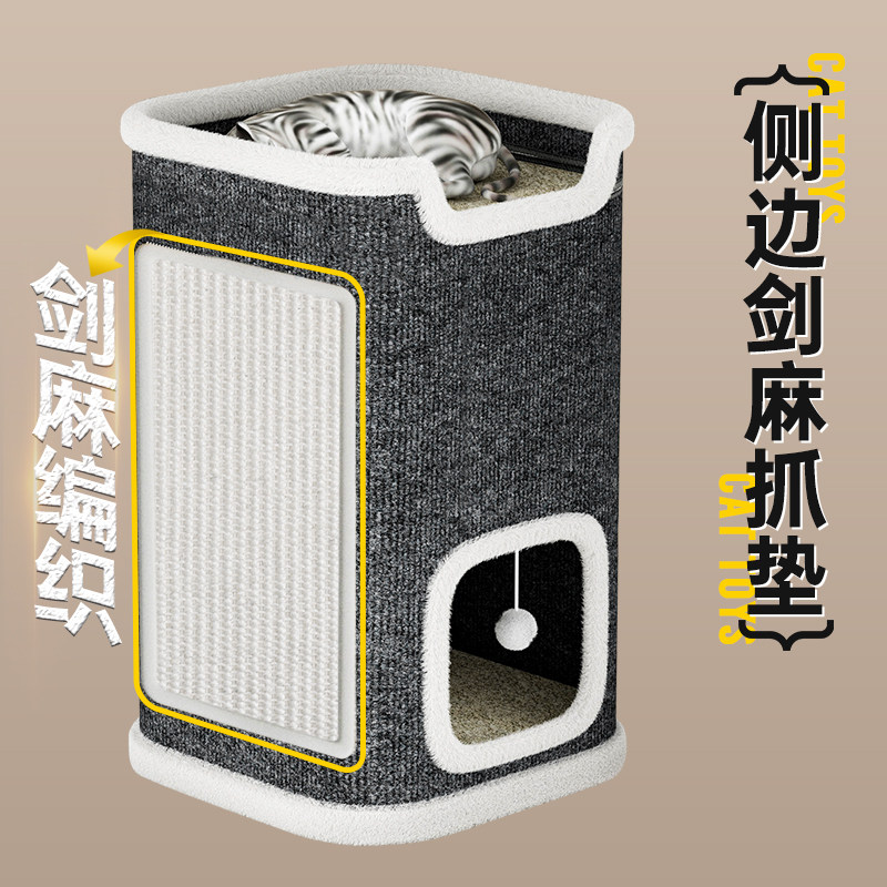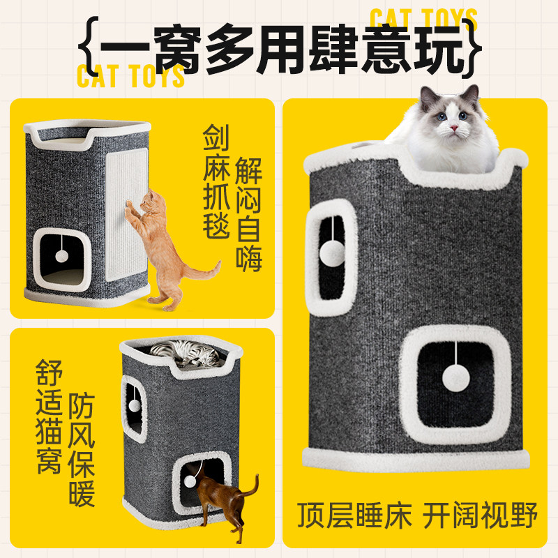 猫窝猫爬架猫树猫抓板一体四季通用冬季保暖半封闭剑麻桶双层猫窝