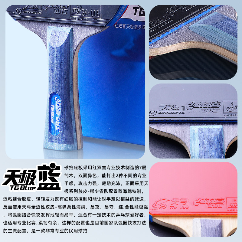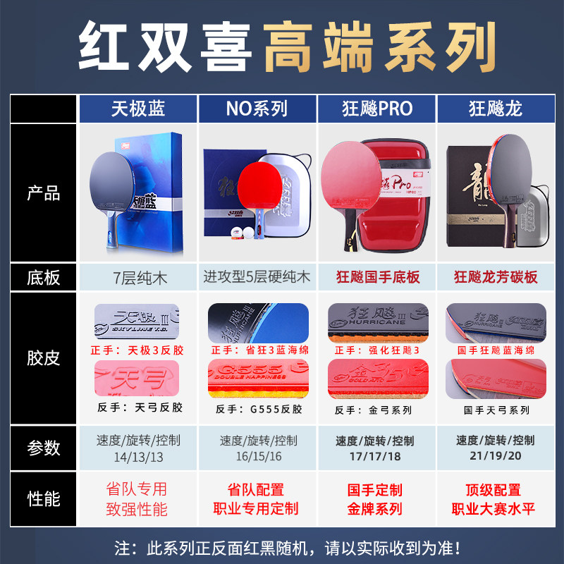 红双喜乒乓球拍天极蓝套装专业碳素横直拍狂飙王马龙孙颖莎高级