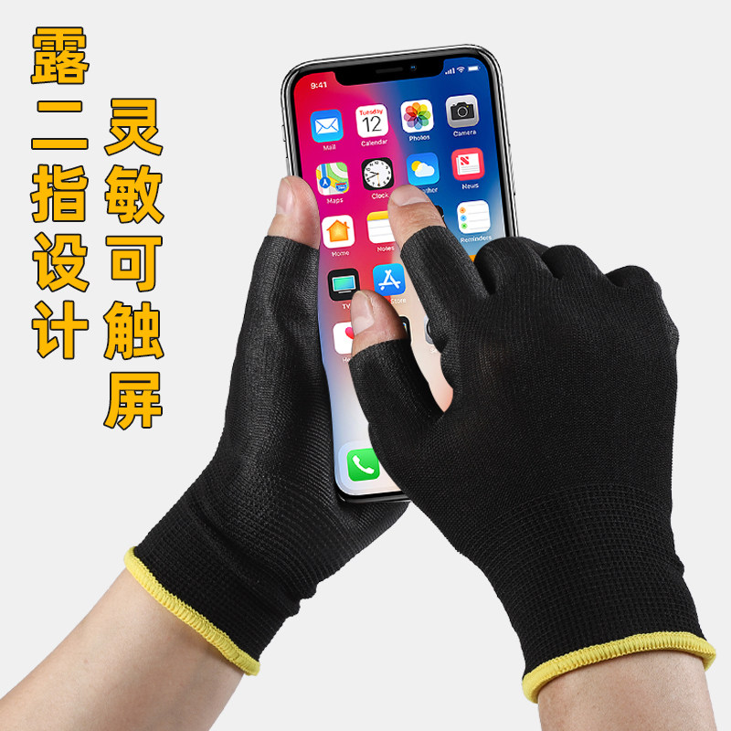 薄款手套外卖专用快递员露二指耐磨防晒打包骑行钓鱼防滑工作触屏