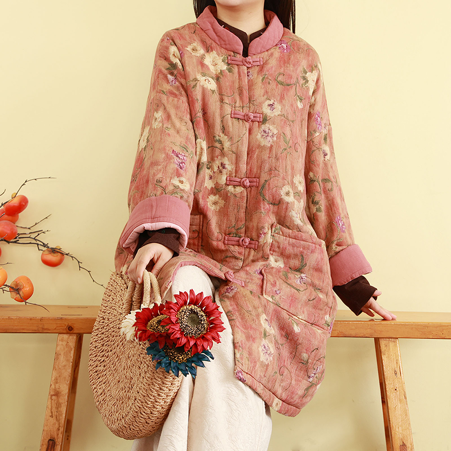 复古印花棉衣外套冬季中长款加厚夹棉保暖盘扣棉服宽松新中式国风