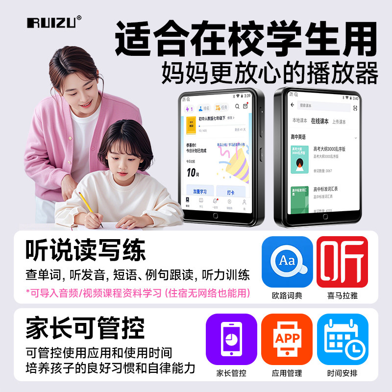 推荐理由:锐族mp4mp3随身听学生版高中生英语听力专用可上网音乐播放器蓝牙
