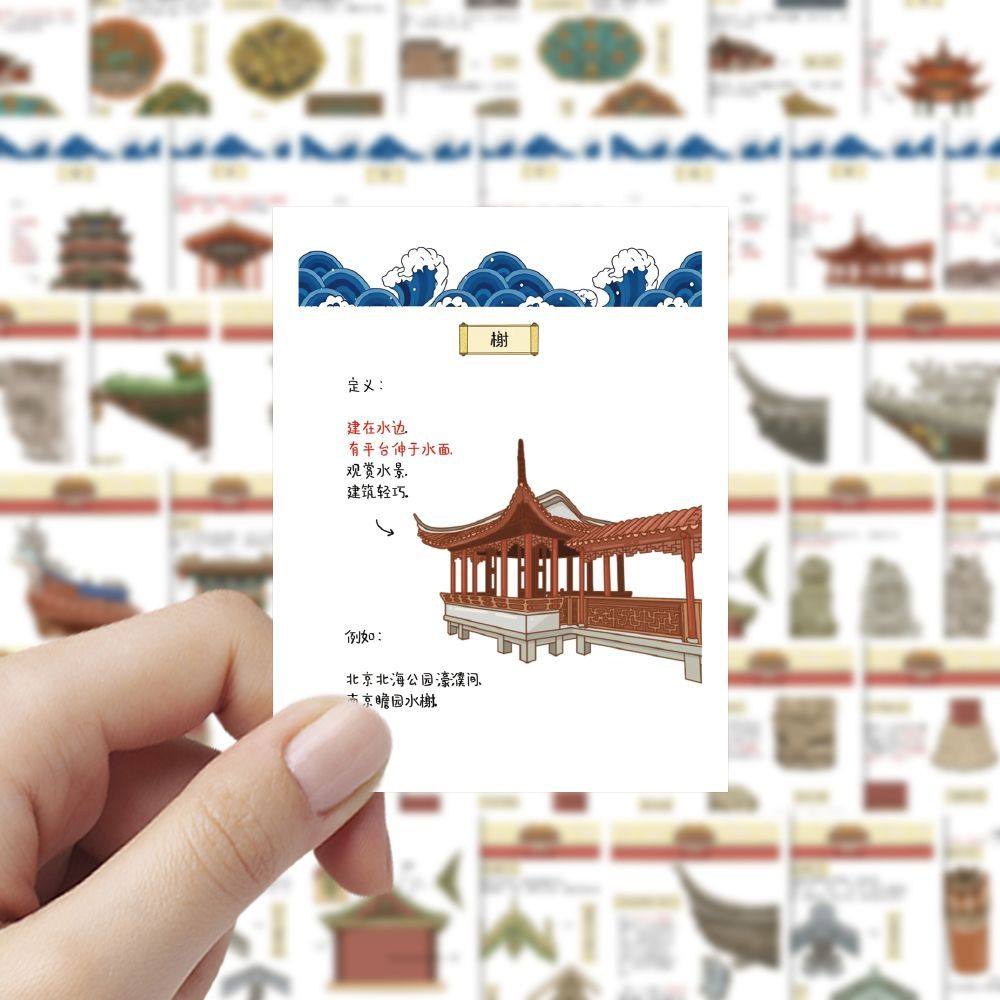 推荐理由:48张古代建筑小知识贴纸趣味中国历史创意学习装饰手账手机壳电脑