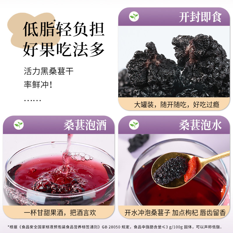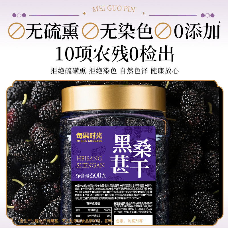 推荐理由:每果时光桑葚干500g无添加糖黑桑椹子大果无沙泡水茶特产果干零食