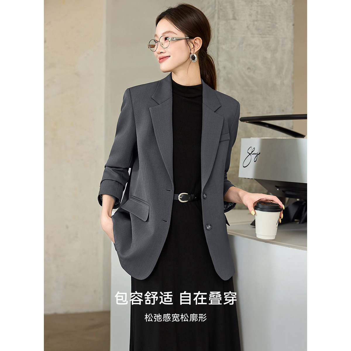 推荐理由:沫晗依美轻职场西服2025秋季高级智感通勤经典廓形显瘦长袖西装女