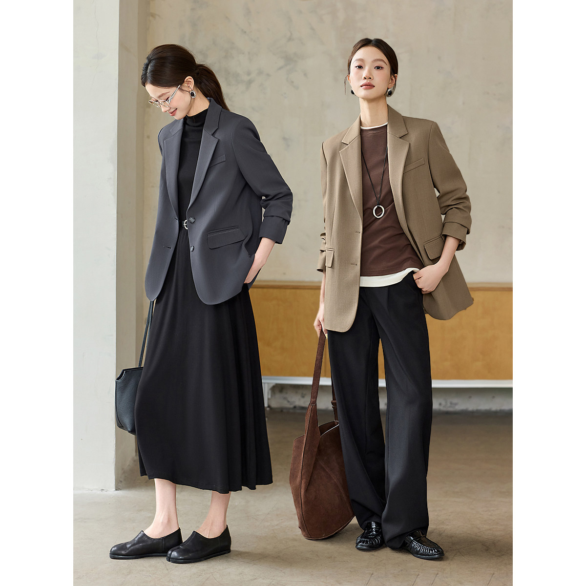沫晗依美轻职场西服2025秋季高级智感通勤经典廓形显瘦长袖西装女