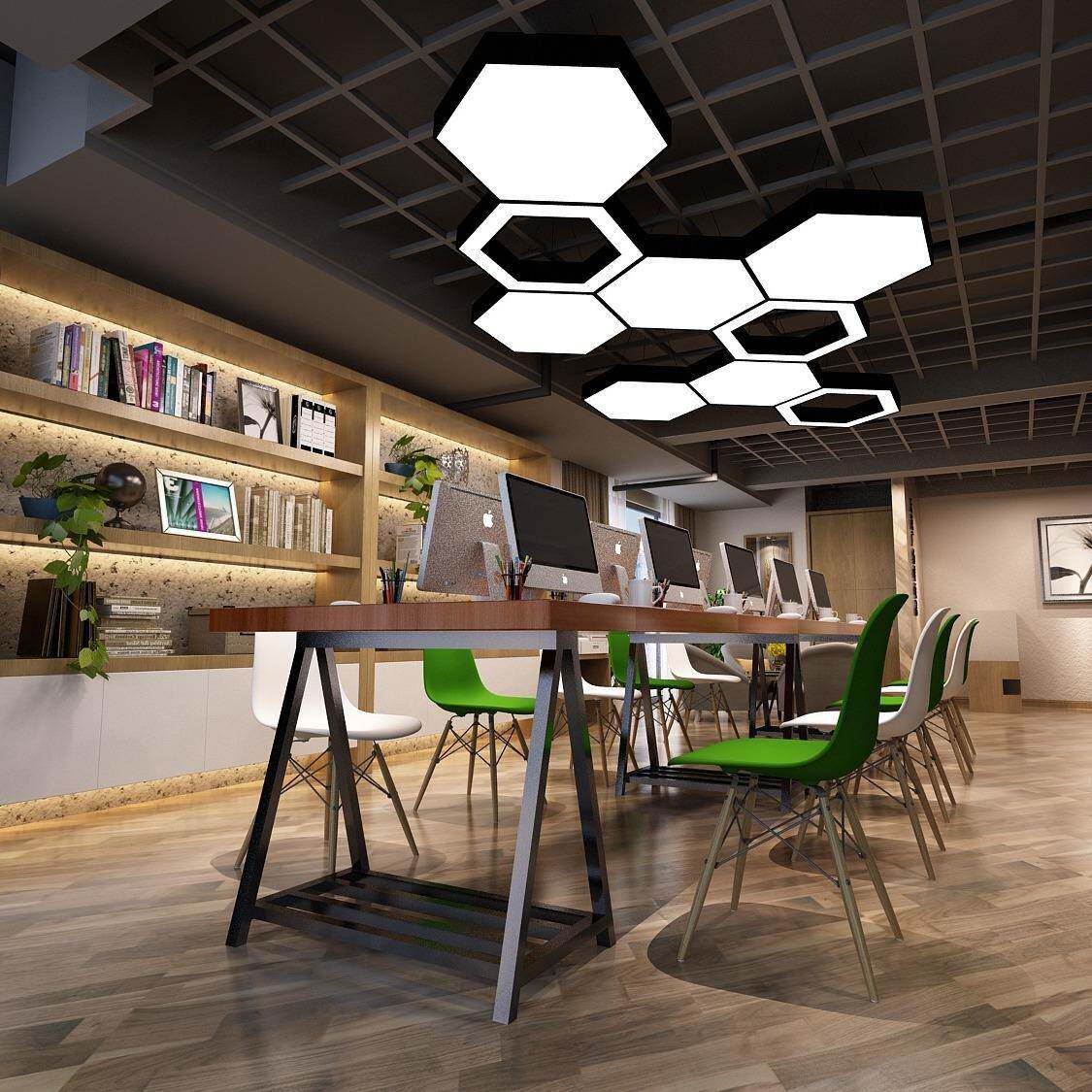 创意健身房LED六边形办公室吊灯异形造型拼接工业风商场超市灯具