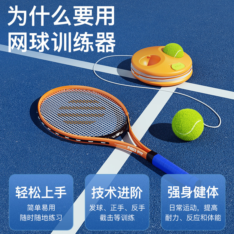 FED网球回弹训练器儿童单人打带线网球拍成人大学生自打神器初学