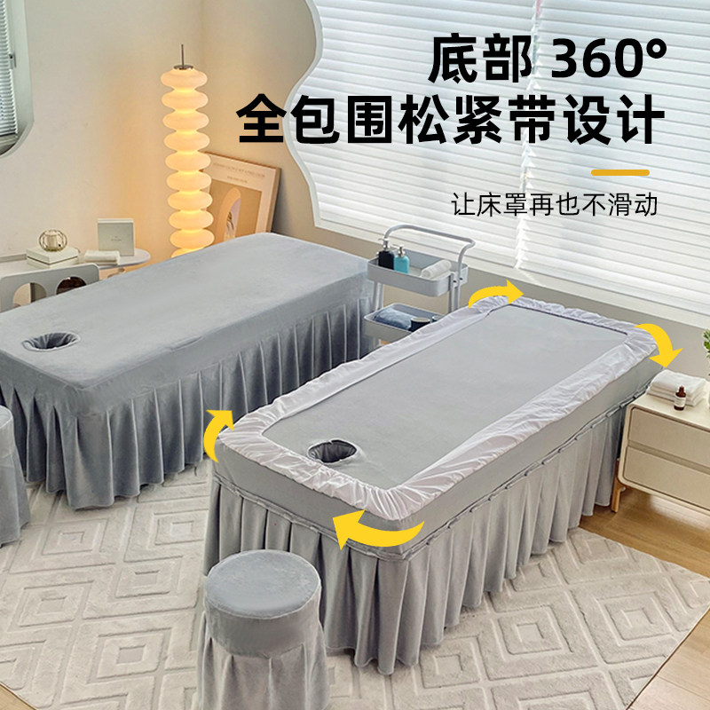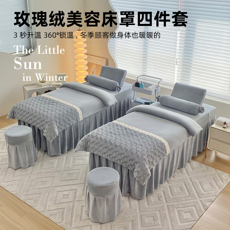 2024网红牛奶绒美容床罩四件套美容院按摩床单轻奢高级感三件专用