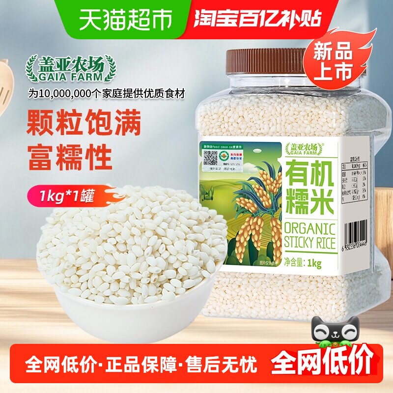 盖亚农场有机糯米1kg*1罐杂粮米圆粒江米粽子米糯米饭五谷杂粮