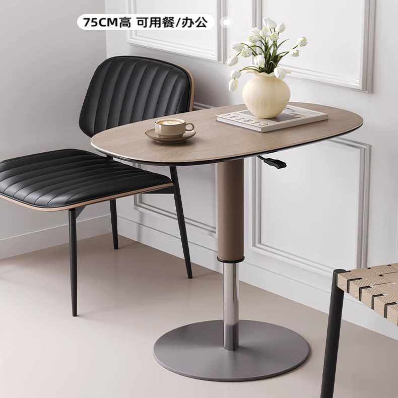 现代简约可升降360度旋转茶几轻奢床边桌沙发边几洞石岩板小角几