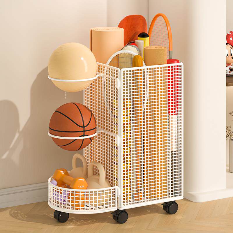 装篮球收纳桶家用瑜珈垫收纳筐带轮健身器材夹缝羽毛球拍置物架子