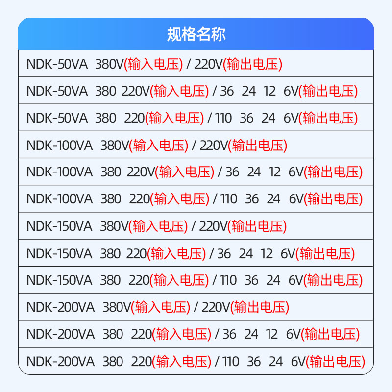 推荐理由:正泰控制变压器380v变220v110v36v24v12v6v NDK-50/100/150/200VA