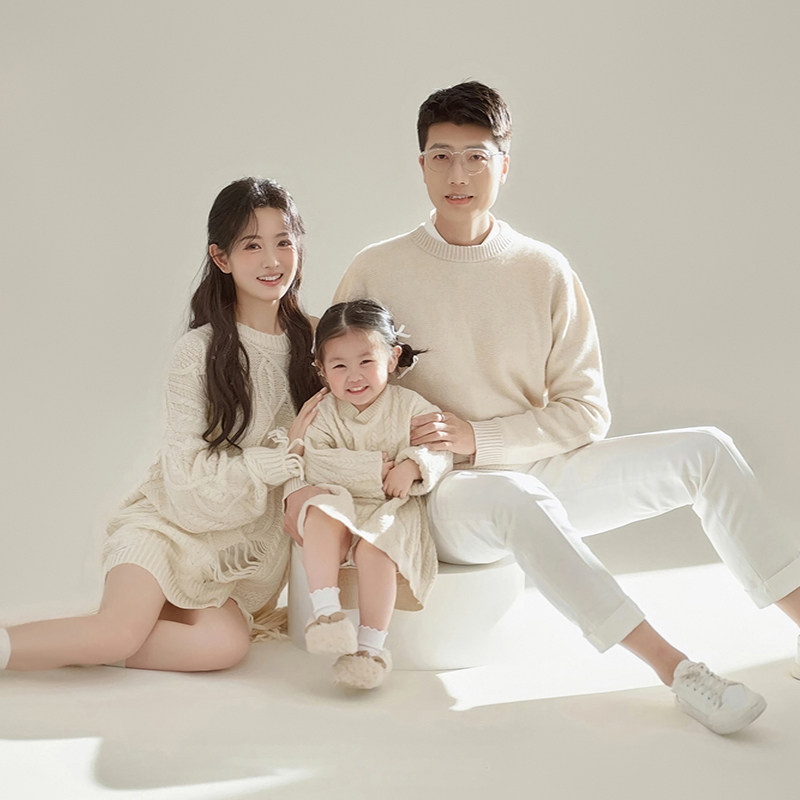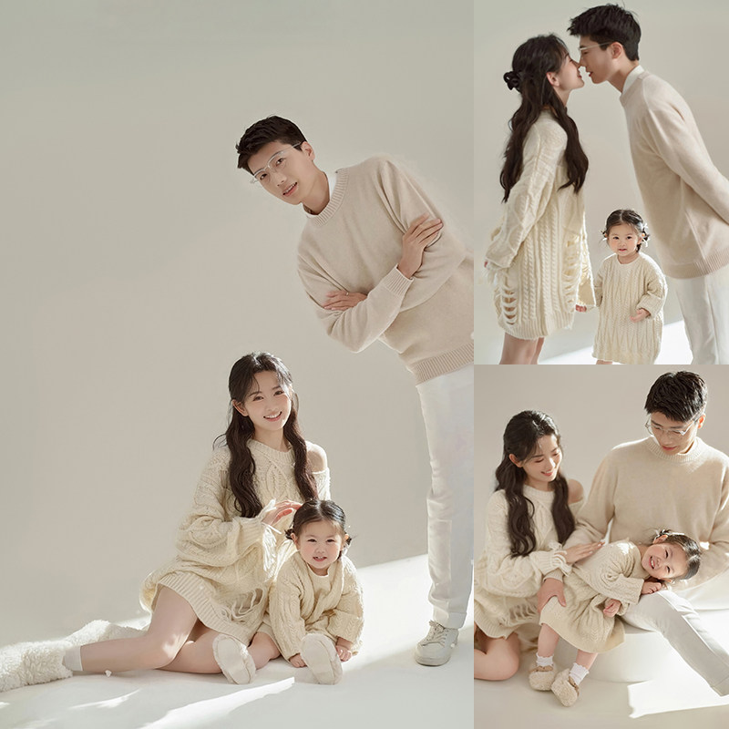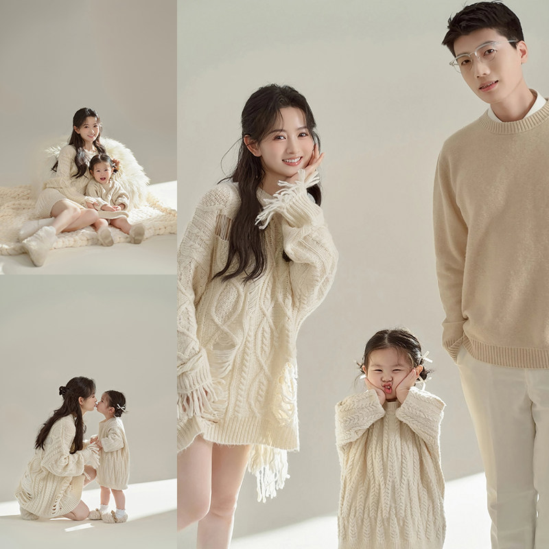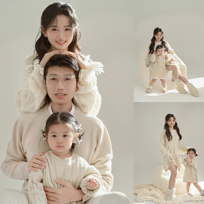 推荐理由:2025新款亲子装一家三口全家福新年白色麻花毛衣影楼拍照主题服装