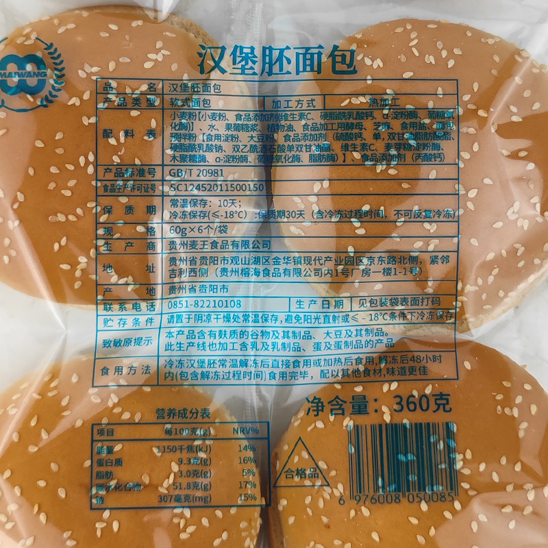推荐理由:益荣面包胚双层营养早餐汉堡胚子半成品汉堡包用原料144对商用