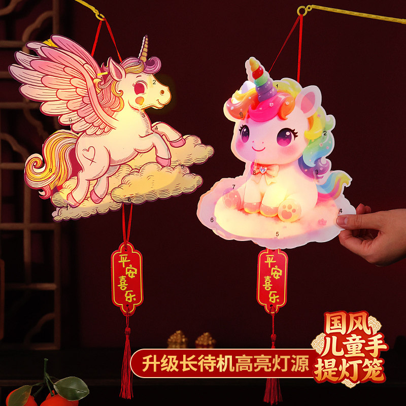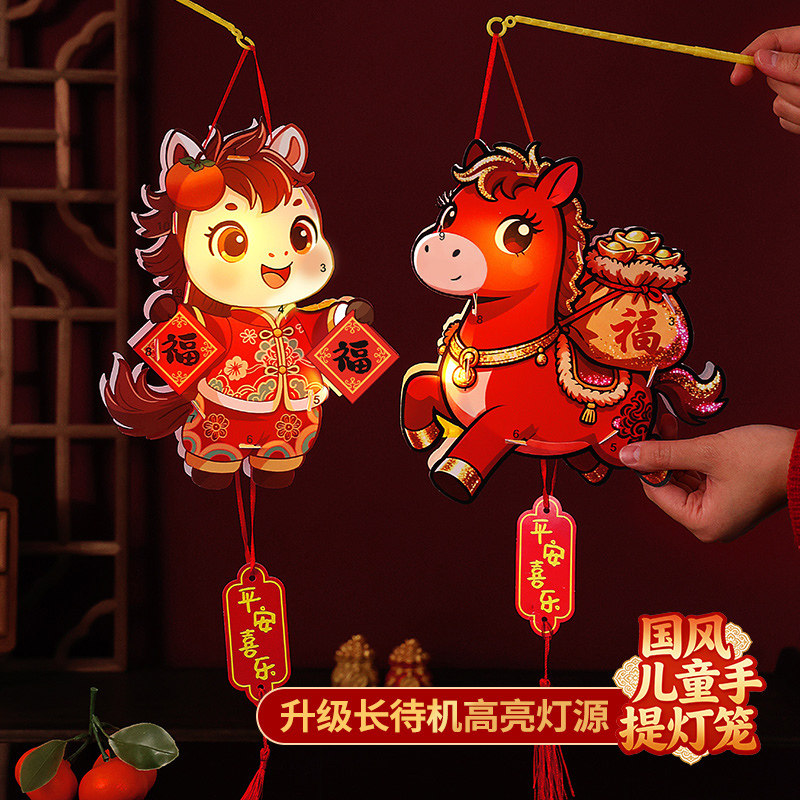 2026新年元旦卡通马年灯笼儿童春节手提花灯手工diy材料制作发光
