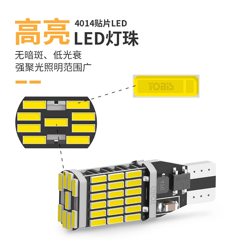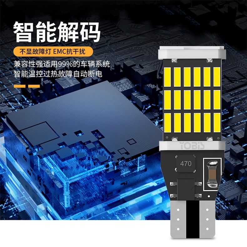 12V汽车LED解码超亮白光倒车灯T15灯泡高位刹车灯尾灯W16W中插泡
