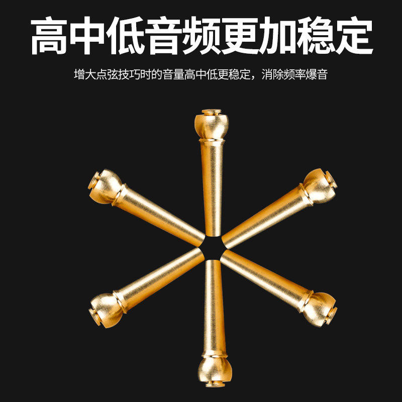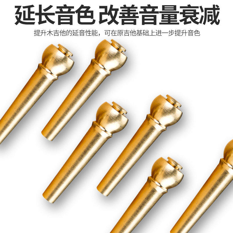 推荐理由:真铜吉他弦钉 民谣吉他固弦锥 木吉他黄铜弦柱 延长延音 一套6根