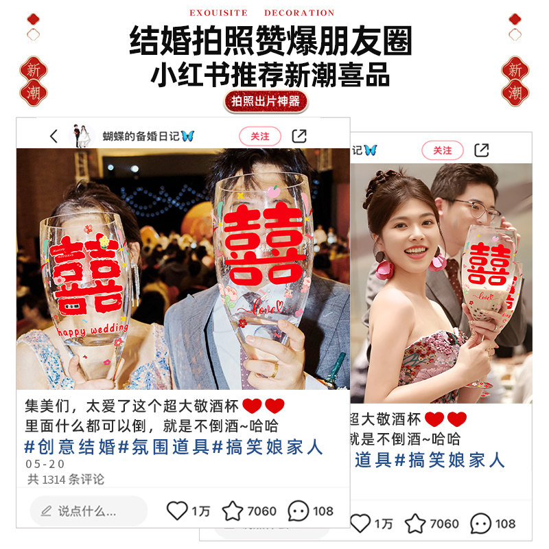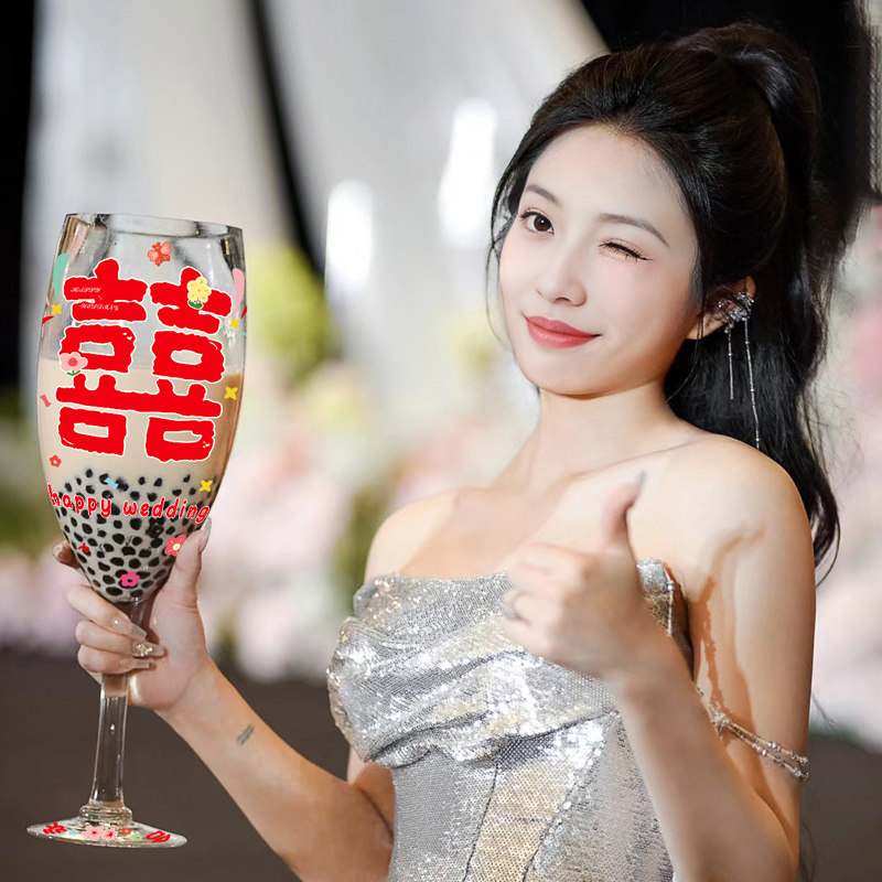 新婚敬酒杯超大diy新人敬茶杯大杯子高脚珍珠奶茶结婚大号红酒杯