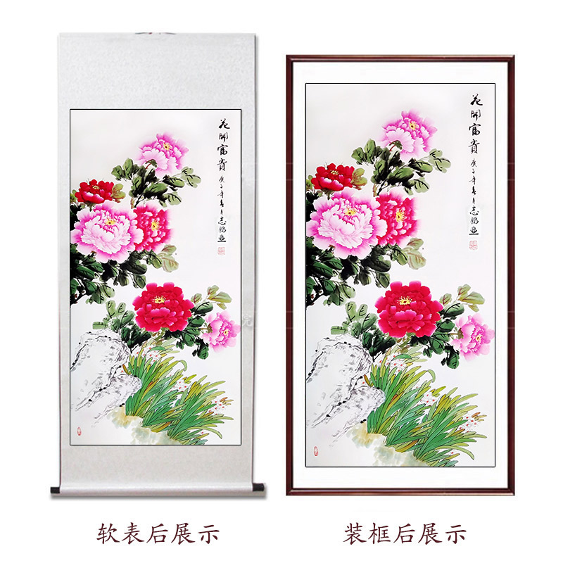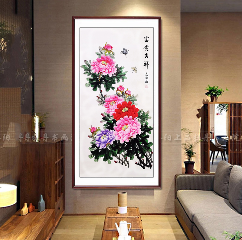推荐理由:国画牡丹画玄关卧室客厅书房装饰字挂画洛阳花鸟手绘真迹四尺竖幅