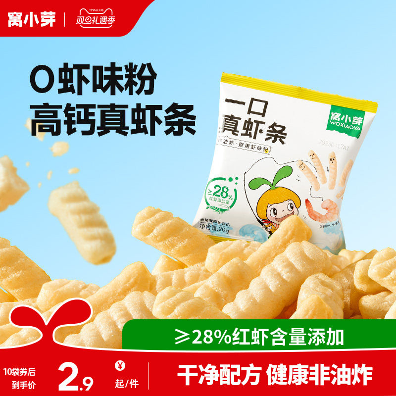 窝小芽一口真虾条零食高钙非油炸虾片磨牙棒送婴幼儿童宝宝辅食谱