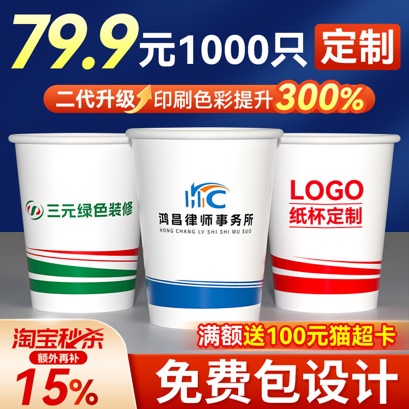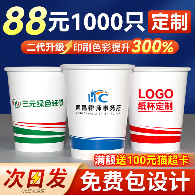 纸杯定制印logo一次性纸杯子家用水杯订制加厚商用广告杯定做整箱