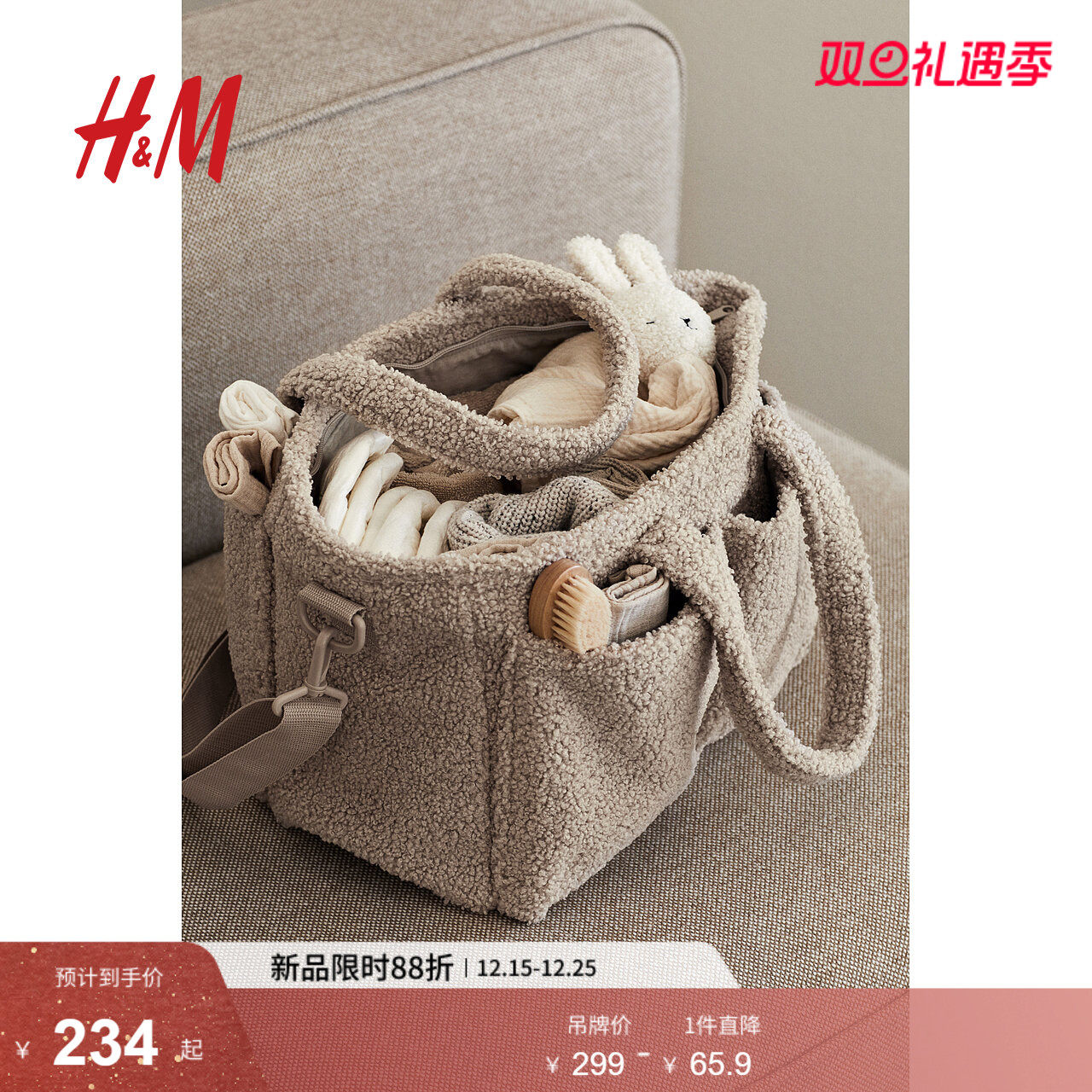 HM包袋2025年秋季新款泰迪绒妈咪包1233365
