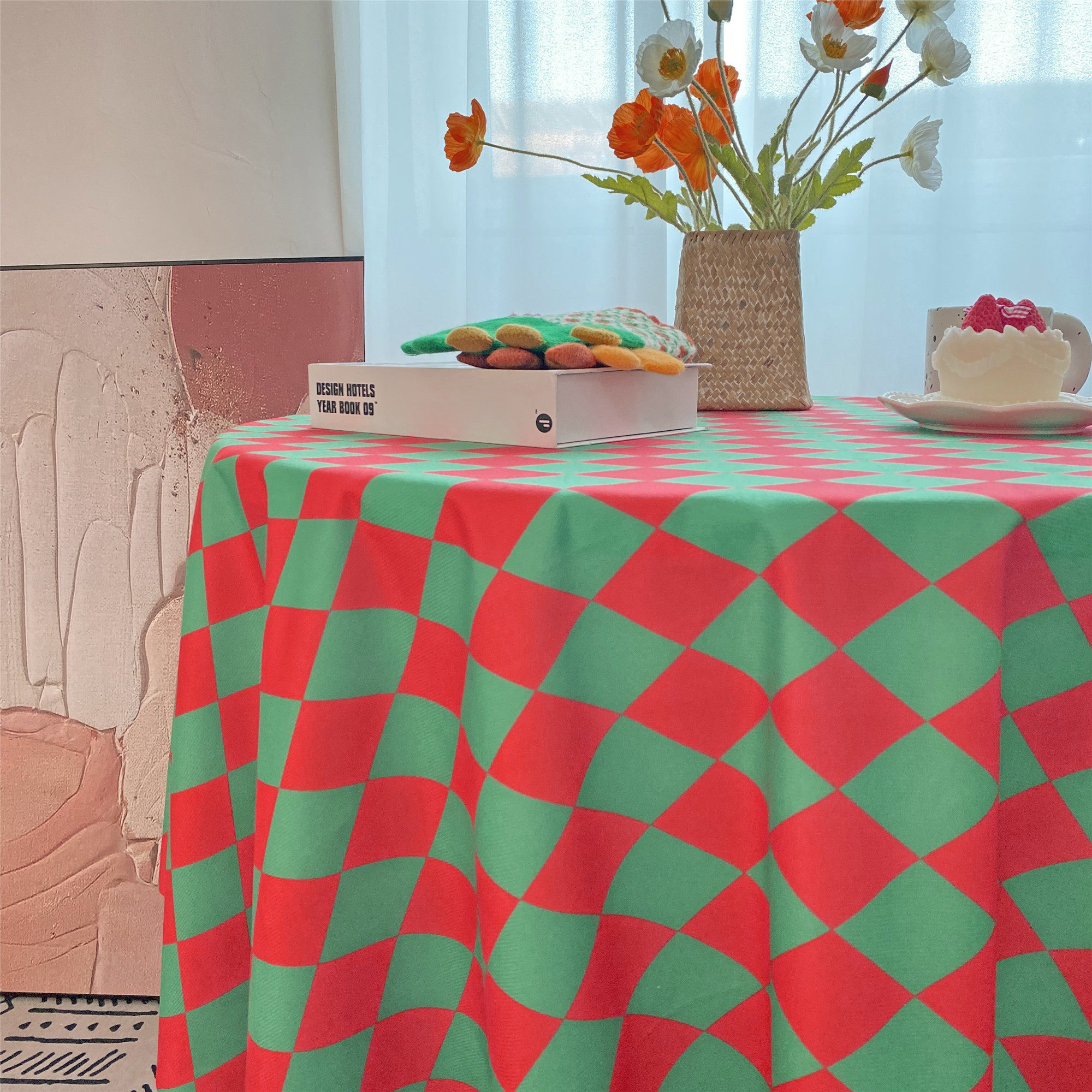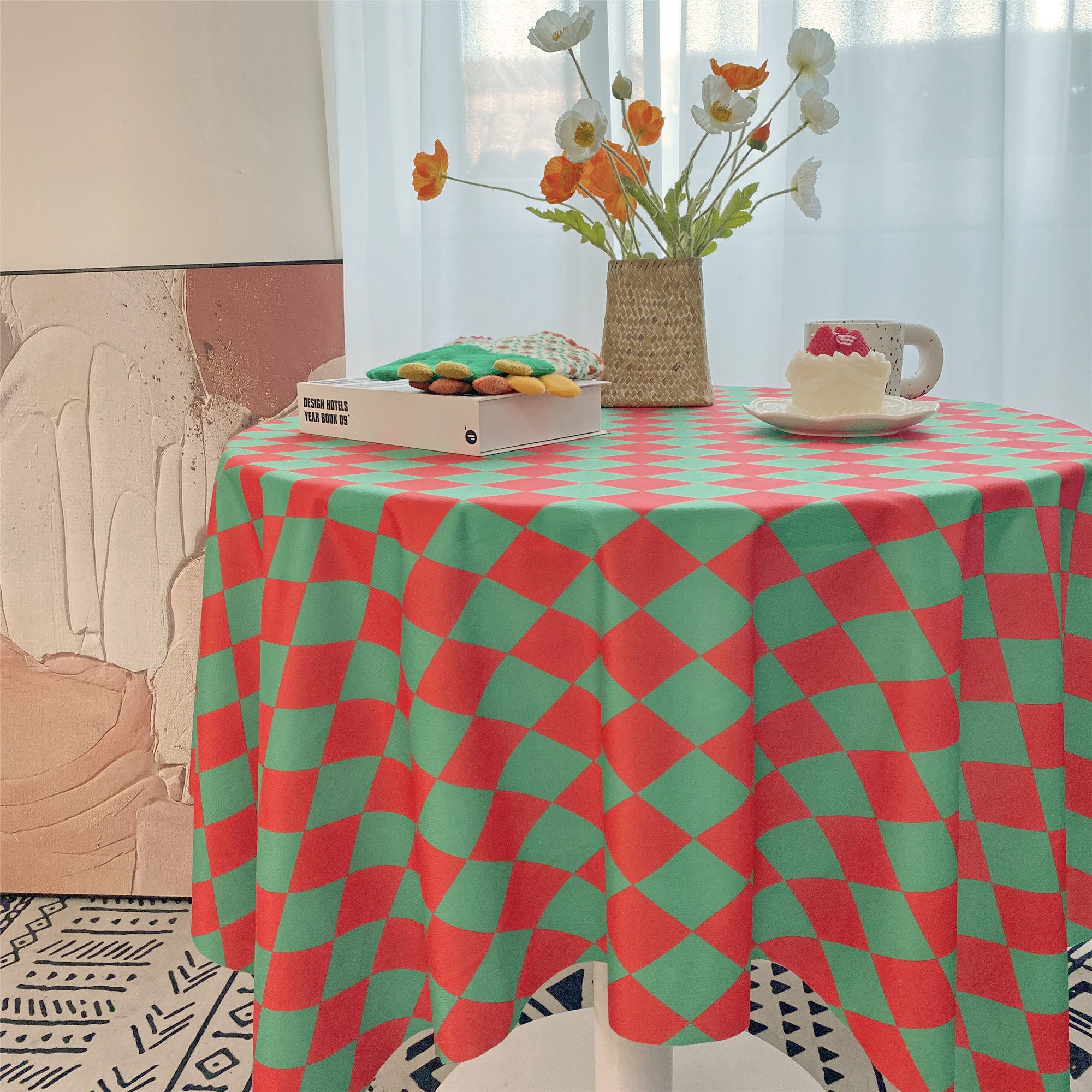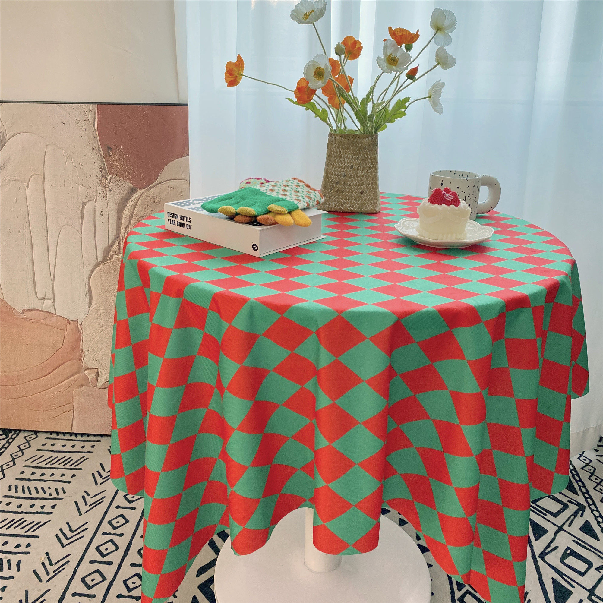 推荐理由:ins复古美式菱形黑格子桌布棋盘圆桌长方形装饰绒布茶几餐桌布
