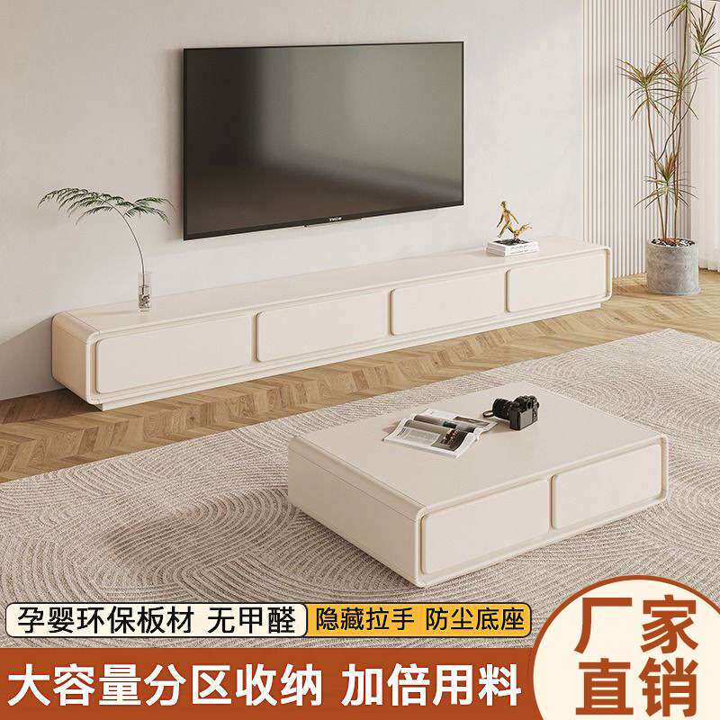 圆角法式奶油风白电视柜简约现代茶几组合客厅家用小户型落地极简