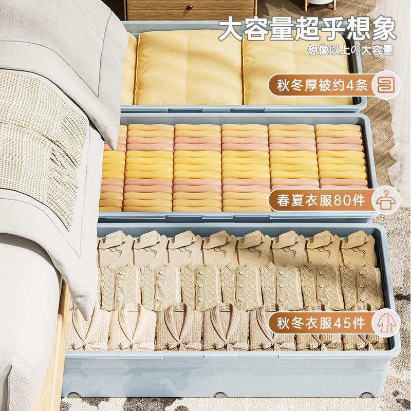 推荐理由:防潮床底收纳箱带滑轮可移动杂物整理箱扁平抽屉式家用衣服收纳箱