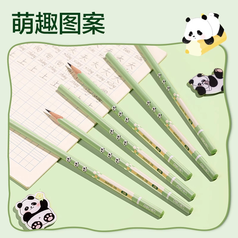 得力熊猫胖达联名铅笔小学生专用专用一年级HB二年级学生专用安全无毒优质铅芯2b考试专用儿童幼儿可爱高颜值