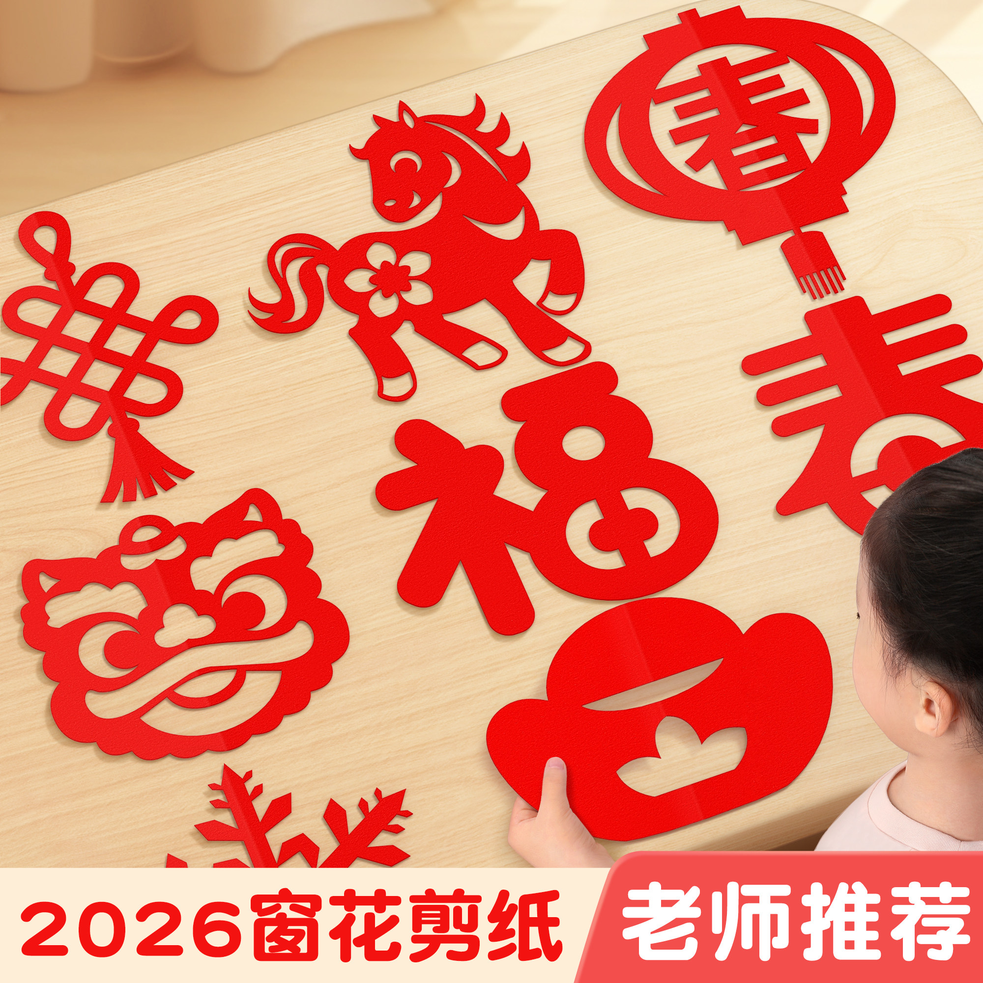 2026年窗花剪纸马年儿童手工diy新款春节趣味红色折纸小学生专用纸半成品中国风过年新年卡纸幼儿园马年彩纸