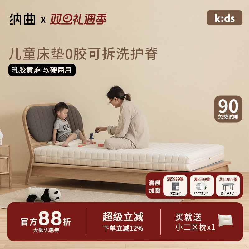 纳曲儿童床垫可拆洗护脊乳胶黄麻独立弹簧床垫硬无甲醛超标可定制