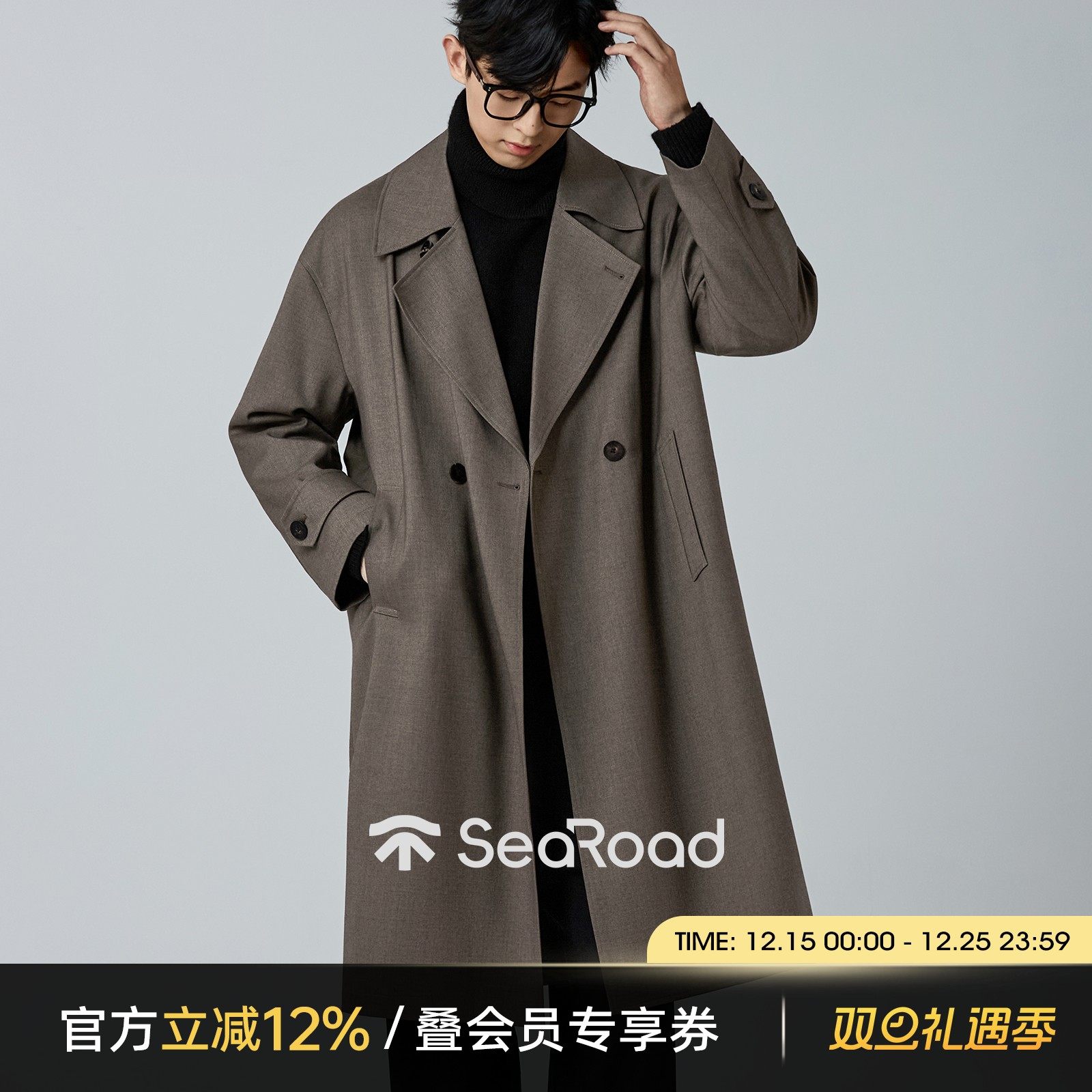 海上公路高智感羊毛混纺风衣男士秋季中长款廓形松弛休闲通勤外套