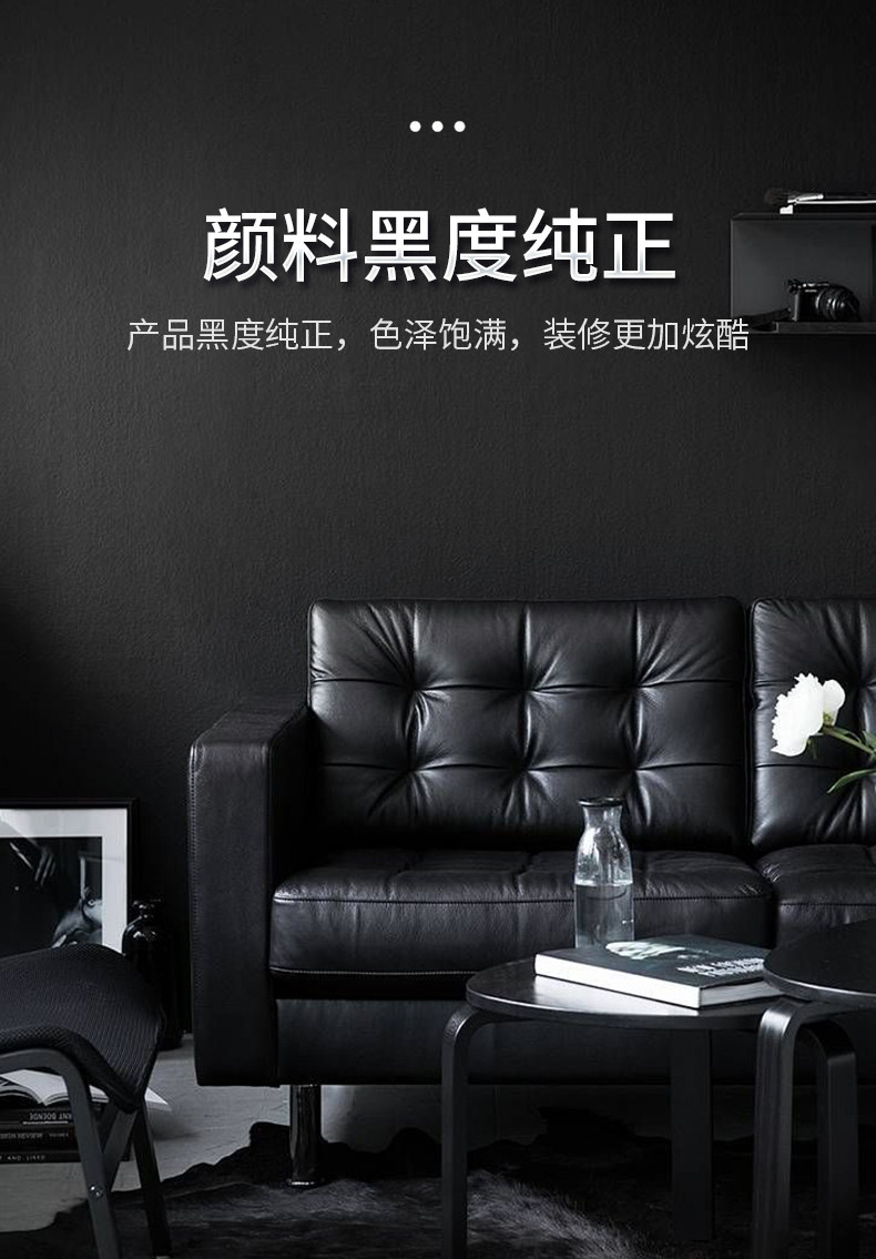 推荐理由:天花纯黑色墙面漆乳胶漆黑色内墙漆环保墙壁顶棚黑色工业风涂料