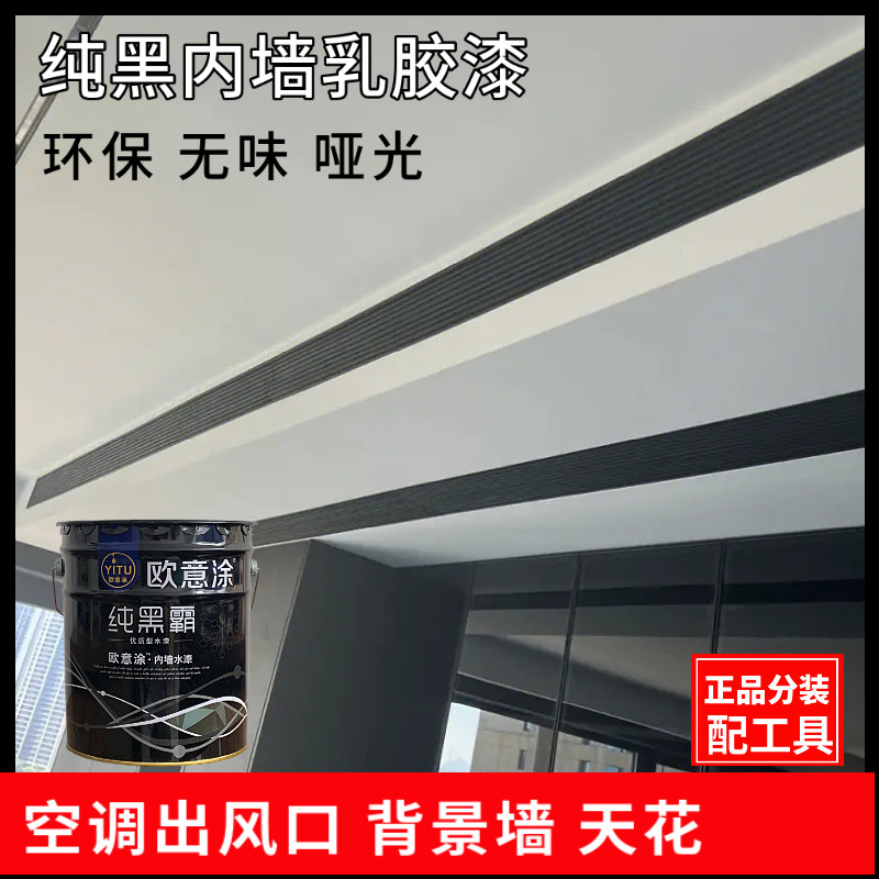 天花纯黑色墙面漆乳胶漆黑色内墙漆环保墙壁顶棚黑色工业风涂料
