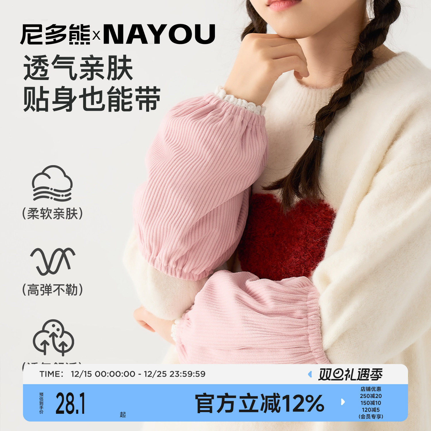 尼多熊X纳柚儿童袖套冬季灯芯绒宝宝防脏套袖女宝防污护袖花边