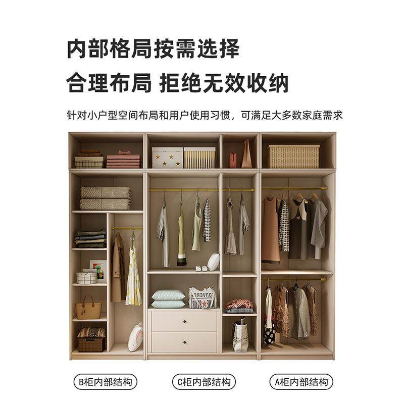 奶油纳风玻璃门柜大小户型衣橱轻奢衣木衣柜实家用HMHF-NU0卧室收