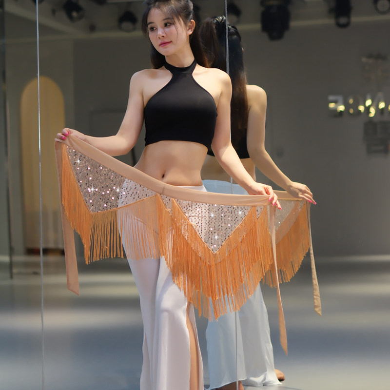 推荐理由:新款肚皮舞亮片性感不规则流苏腰链东方舞练功服百搭臀巾腰巾演出