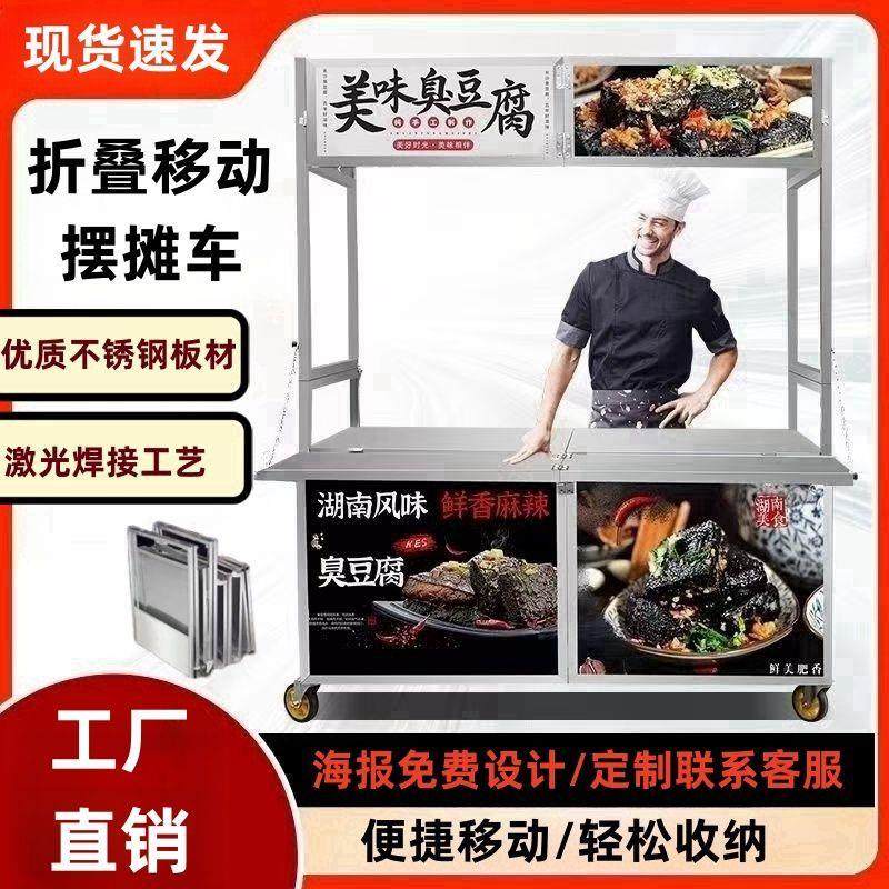不锈钢移动可折叠餐车摆摊车小吃车移动户外摆地摊夜市推车多功能