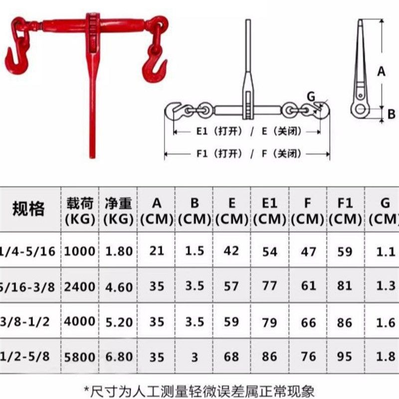 手动棘轮拉紧器带钩无钩收紧器紧固器紧绳器双钩货车整套铁链紧线
