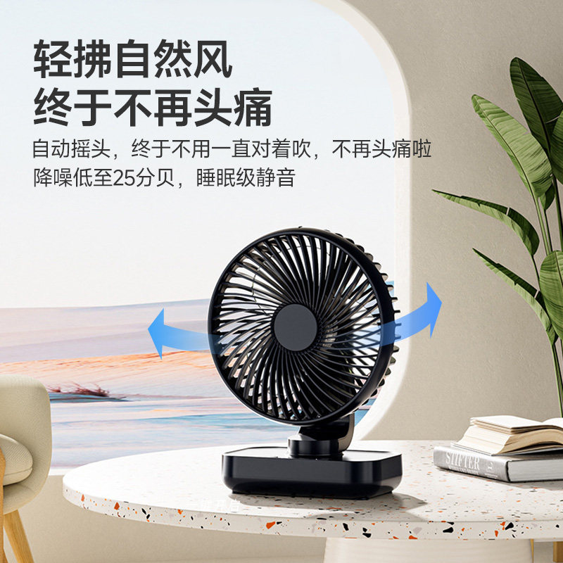 Kini自动摇头小风扇USB风扇电扇电风扇静音迷你小型台式便携充电学生宿舍床头办公桌工位挂墙壁挂桌面新款