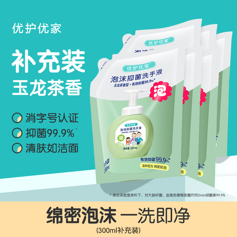 优护优家泡沫抑菌洗手液补充装家用儿童泡泡替换装袋装滋润不伤手
