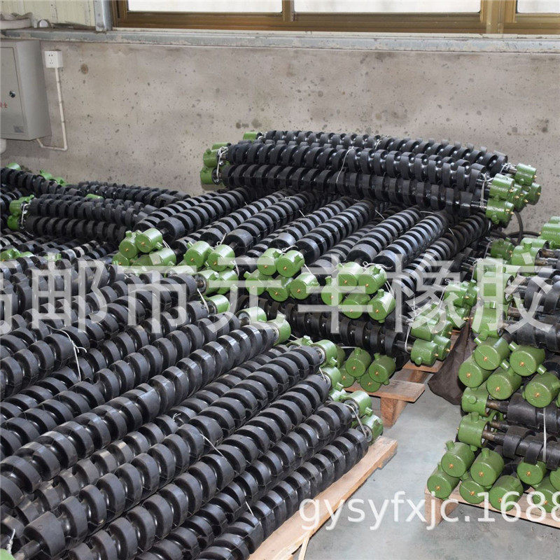 现货缓冲托辊批发橡胶双向螺旋托辊厂家矿用聚氨酯托辊输送机用辊