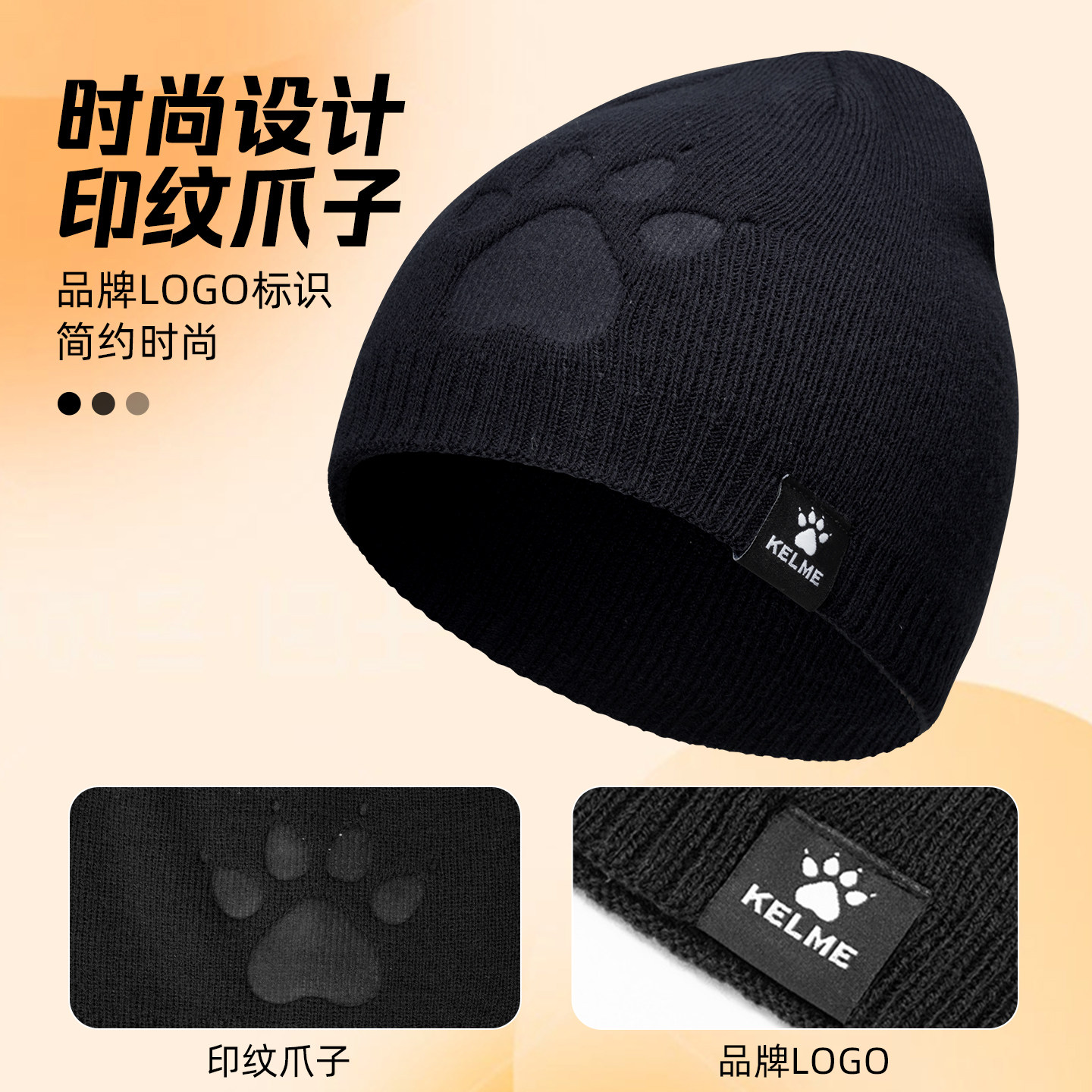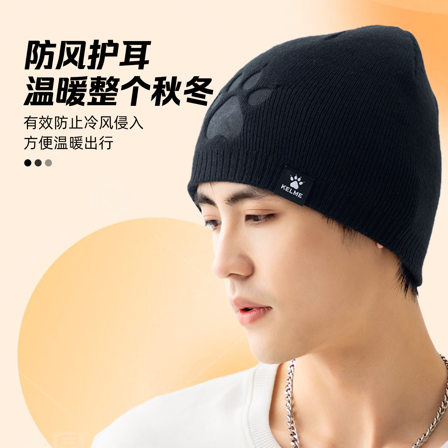 KELME卡尔美帽子冬季男保暖防寒骑行针织显小户外遮耳跑步针织帽